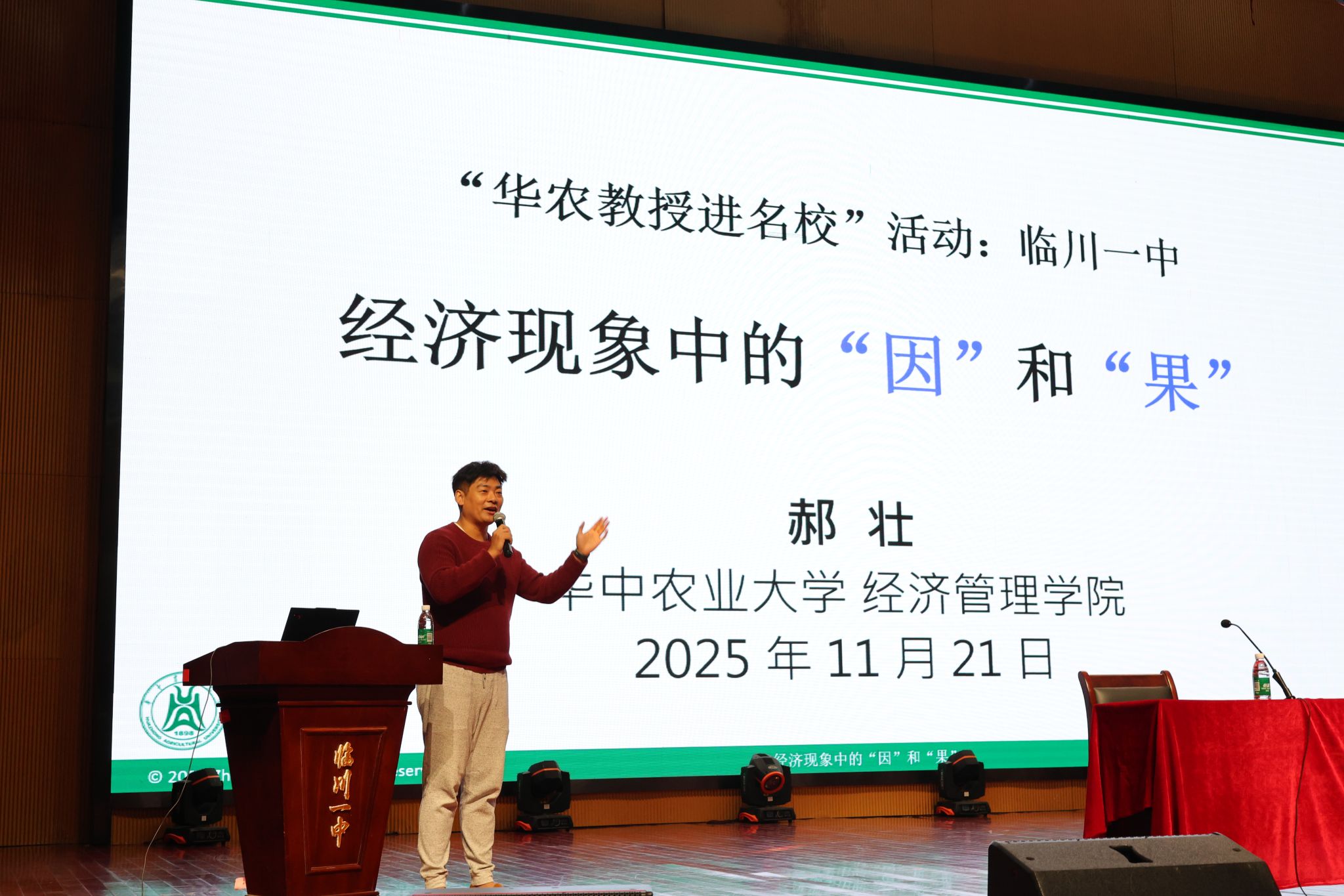 讲座现场,郝壮副教授为两校500余名同学带来《经济现象中的“因”和“果”》专题科普报告。他从经济学研究范畴切入,以“商品和服务的生产、消费、分布”为核心,结合“一份耕耘,一份收获”等学习生活中常见的因果关系的经济学内涵,系统探讨了经济研究视角下的对因果关系的分析方法与应用实例。为方便同学们理解抽象的经济学概念,他以“打伞与下雨”等生活案例教会学生如何区别相关关系与因果关系。同时,他通过关系矩阵、有向无环图等可视化方式直观展示变量间的关联与因果链条,向同学们阐明“微观经济学家的核心任务是揭示经济现象中因果关系真相”这一核心观点。活动结束后,一名同学主动找郝壮老师签名寄语,并郑重表达了未来报考华中农业大学经济学专业的心愿。