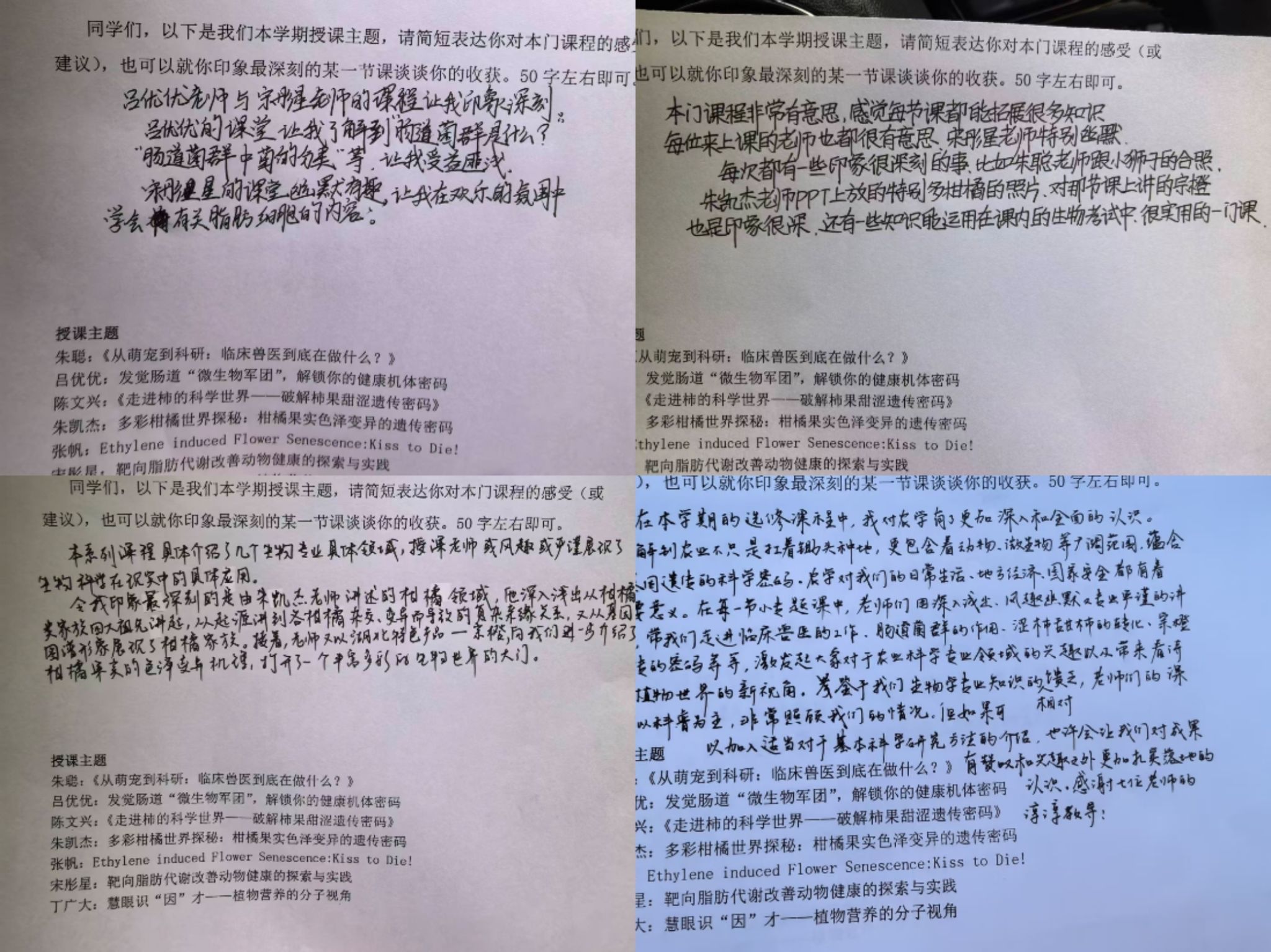 系列课程在高中生中引起热烈反响,获得广泛好评。许多同学表示,课程彻底改变了他们对农业的刻板印象,认识到农业不仅关乎耕作,更涉及动物科学、微生物学、基因遗传等诸多前沿领域,与日常生活、地方经济乃至国家安全紧密相连。有同学说:“每堂课都拓展了新知识,老师讲解生动易懂,部分内容还能运用到平时的生物学习中,非常实用。”