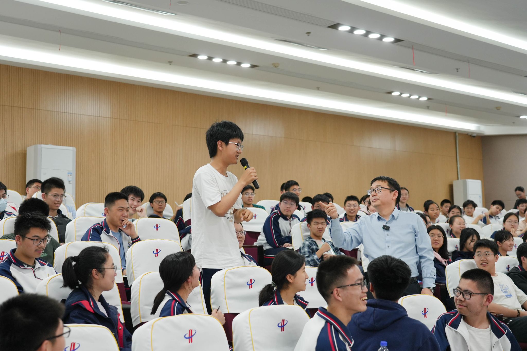 互动环节,同学们就生物学科学习方法、智能生物学前沿动态以及学科交叉的具体内涵等问题踊跃提问。严建兵逐一耐心解答,并表示,高中阶段既要扎实打好学业基础,更要守护好内心深处对未知世界的兴趣与渴望,努力成长为有理想、有情怀、有追求的新时代青年。