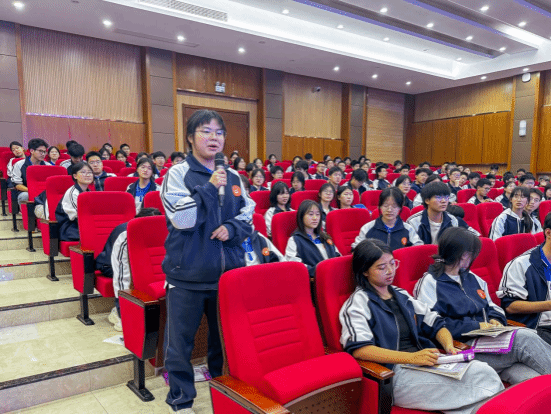 互动交流环节,同学们热情高涨,围绕学农前景、收入待遇、药物研发、国际合作等问题踊跃提问。贺兰耐心细致、真诚坦率地一一作答,结合自身从乡村放牛娃到如今“老有所养、幼有所依、衣食无忧”的成长历程娓娓道来,切实打消大家对农科专业的固有顾虑;用“专利抢先一天,就能锁定核心成果”的科研案例,传递创新与竞争的重要性;用养殖户期盼的眼神和话语,深刻诠释学以致用、服务产业的初心使命;用“美国限制合作,我们更要自立自强”的坚定态度,激励在场的每一位同学迎难而上、勇攀高峰,在青春赛道上书写属于自己的奋斗篇章。