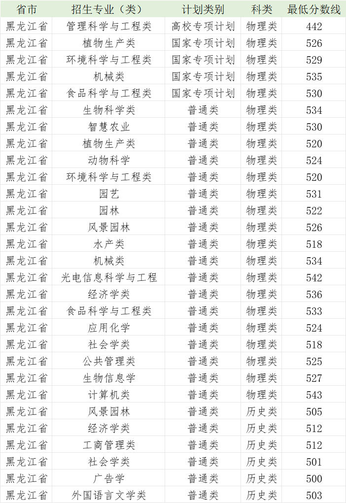 华中农业大学2023年黑龙江省各专业录取分数线