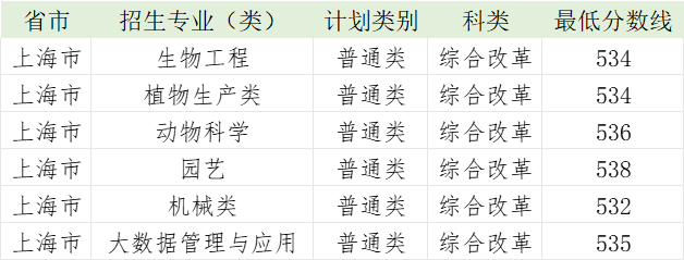 华中农业大学2023年上海市各专业录取分数线